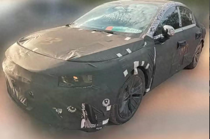车头部分,引擎舱相比普通燃油车略短,同时前脸略显厚重,即便覆盖着厚厚伪装,依然可以观察新车前脸造型丰富,尤其有着凸出的前唇和凹陷的中网,以及相对厚实的前包围,这就带来更加丰富的前脸表情。谍照采用了分体式车灯设计,车灯造型被伪装覆盖,无法辨别细节,车灯下方设计了导流槽,造型同样无法辨别。