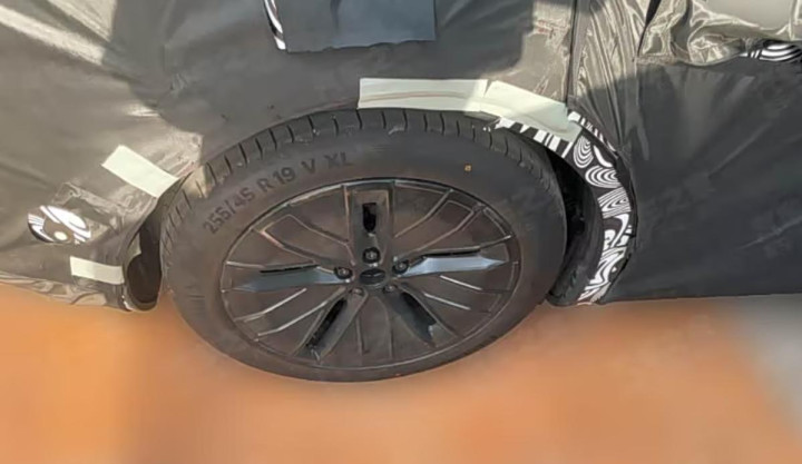 谍照轮毂为熏黑处理,不过透过伪装,可以隐约辨别轮毂的造型,大概呈现8辐风车造型,并没有过于激进。