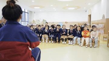 11月4日,老师带着新入学小朋友在四川省成都市龙泉驿区灵瑞幼儿园和其他小朋友打招呼。