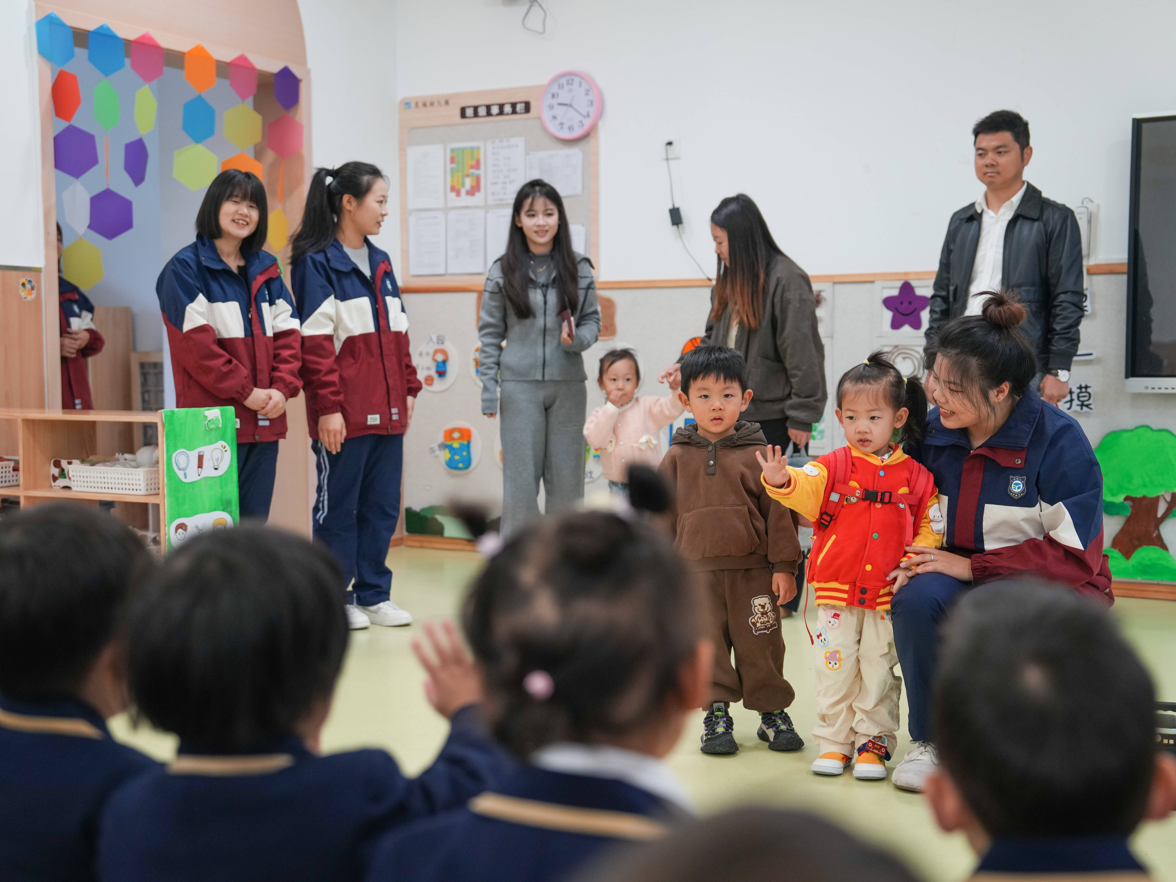 11月4日,在四川省成都市龙泉驿区灵瑞幼儿园,家长带着新入园的小朋友了解幼儿园生活。如今