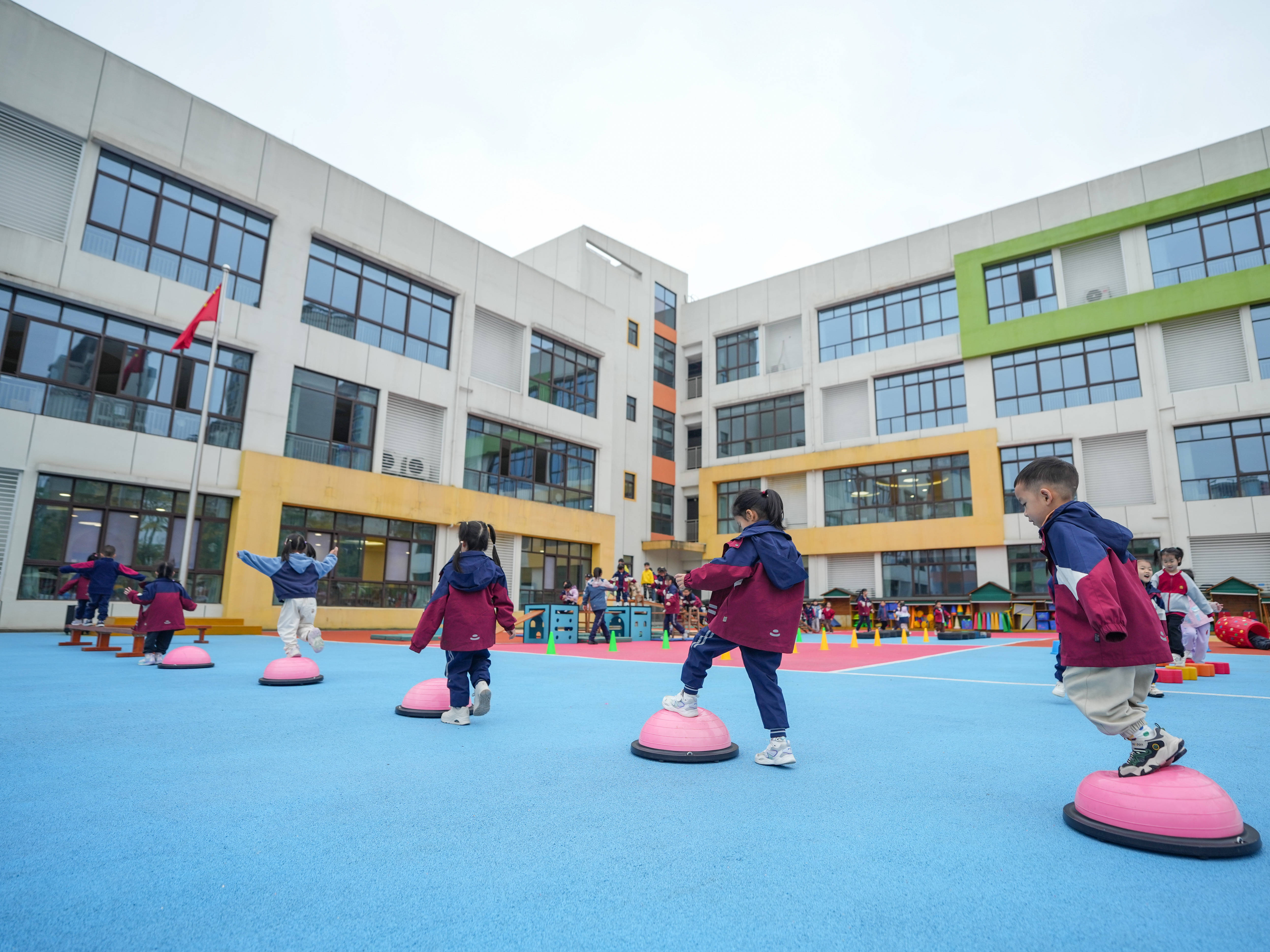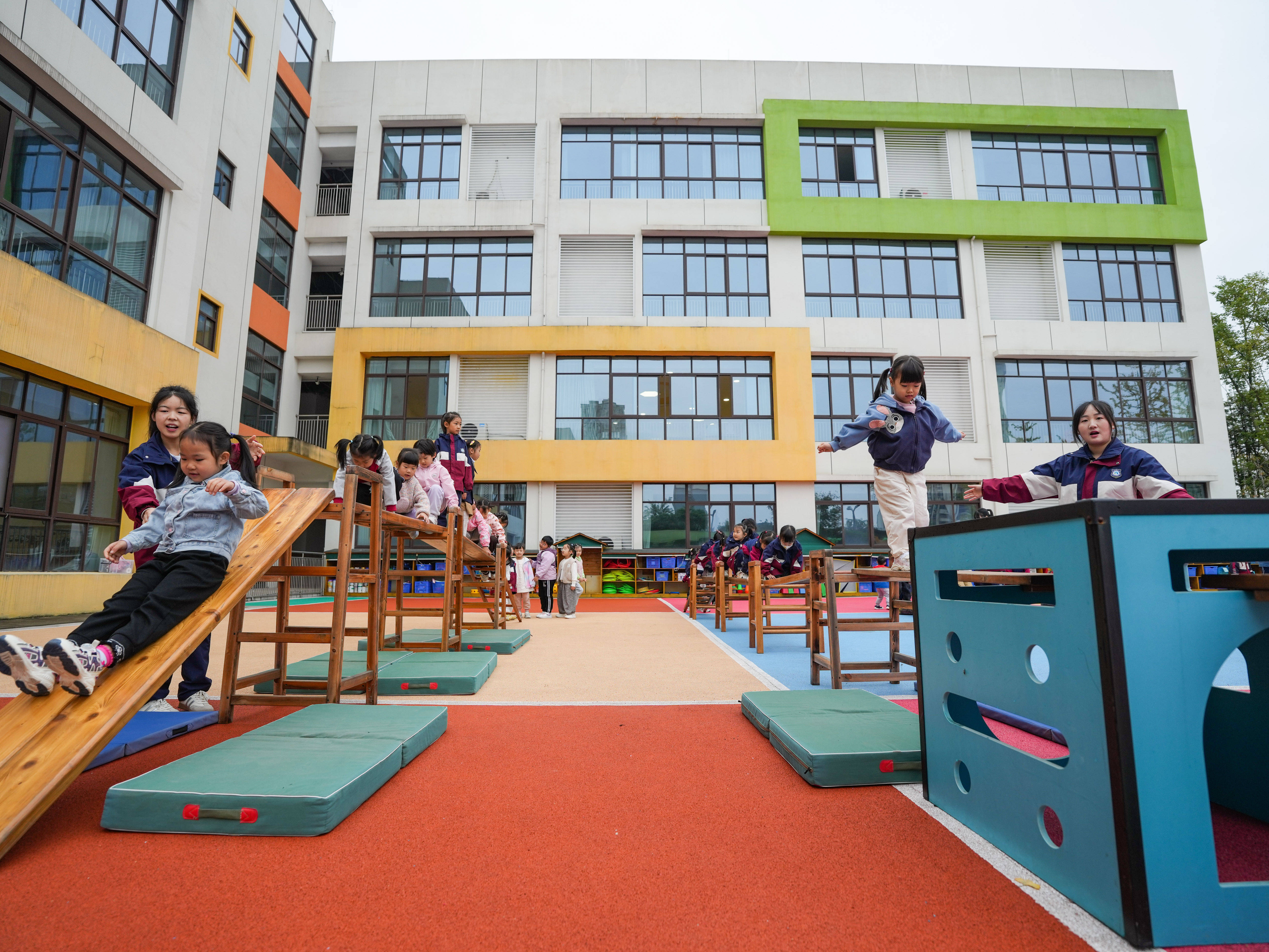 11月4日,小朋友在四川省成都市龙泉驿区灵瑞幼儿园户外活动。